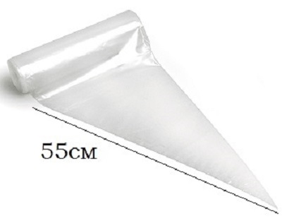 Фактурный полиэтилен. Размеры: длина - 55 см., толщина ~ 25 мкм. Предназначены для отсадки различных пищевых масс с помощью кондитерской насадки и без нее. Обработке и повторному использованию не подлежат.
