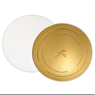 Плотная усиленная картонная подложка с золотым и белым покрытием.Обладает влаго и жиронепроницаемыми свойствами.Диаметр= 36см.Толщина= 3мм.В упаковке= 10шт.