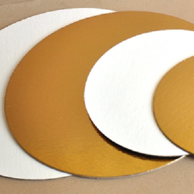 Подложка картонная ламинированная одноразовая двухсторонняя: золотого/перламутрового цветов для выкладки тортов, пирожных, десертов и других продуктов. Диаметр 280 мм. Толщина 3,2 мм.