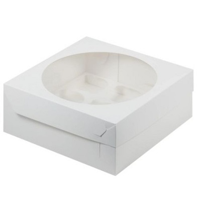 Коробка предназначена для капкейков, кексов, пирожных и т. д. Самосборная конструкция, не требующая дополнительного скрепления.