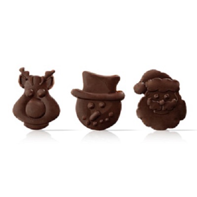 Шоколадное украшение в виде оленя, снеговика и санты размером 35х45 мм.