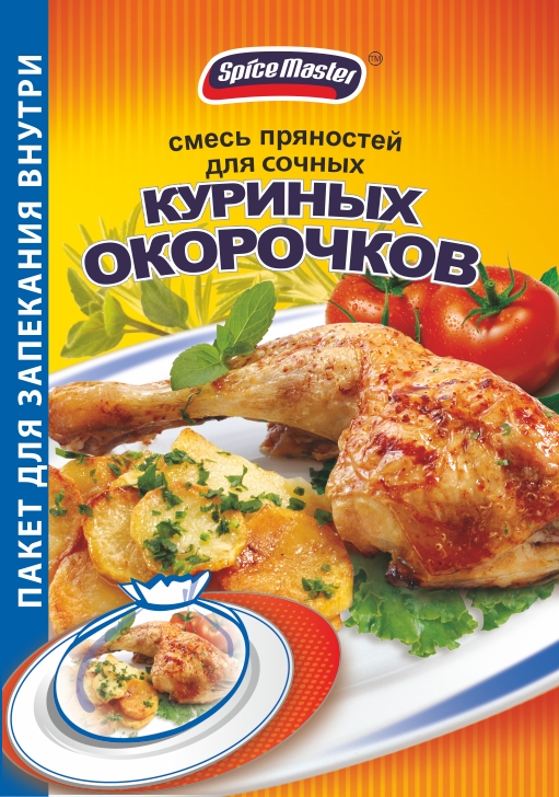 Готовая Смесь пряностей для сочных куриных окорочков предназначена для приготовления вкусного и сочного блюда, которое внесет приятное разнообразие в ваш рацион. Двухкамерная удобная упаковка укомплектована пакетом для запекания.